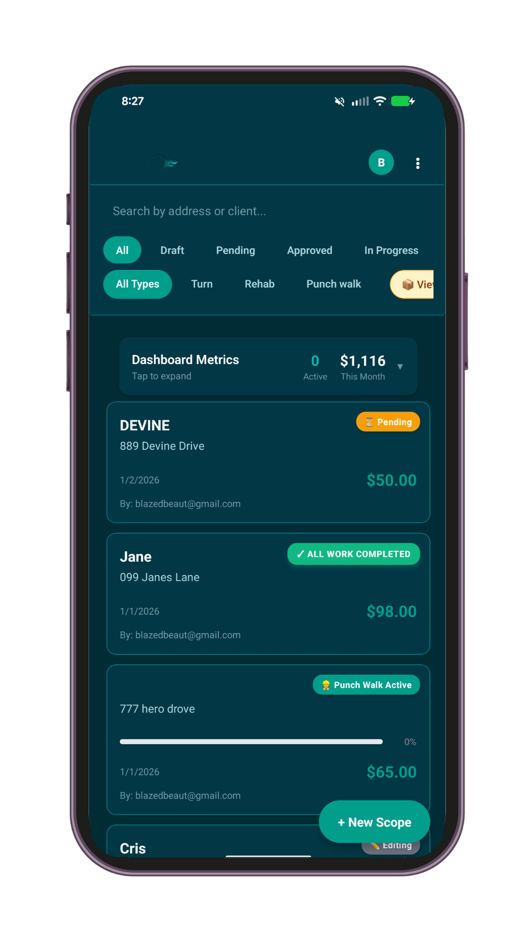 Send scopes, collect bids, track progress, and handle chargebacks—all in one place. Clear communication means fewer surprises and better results on every job.